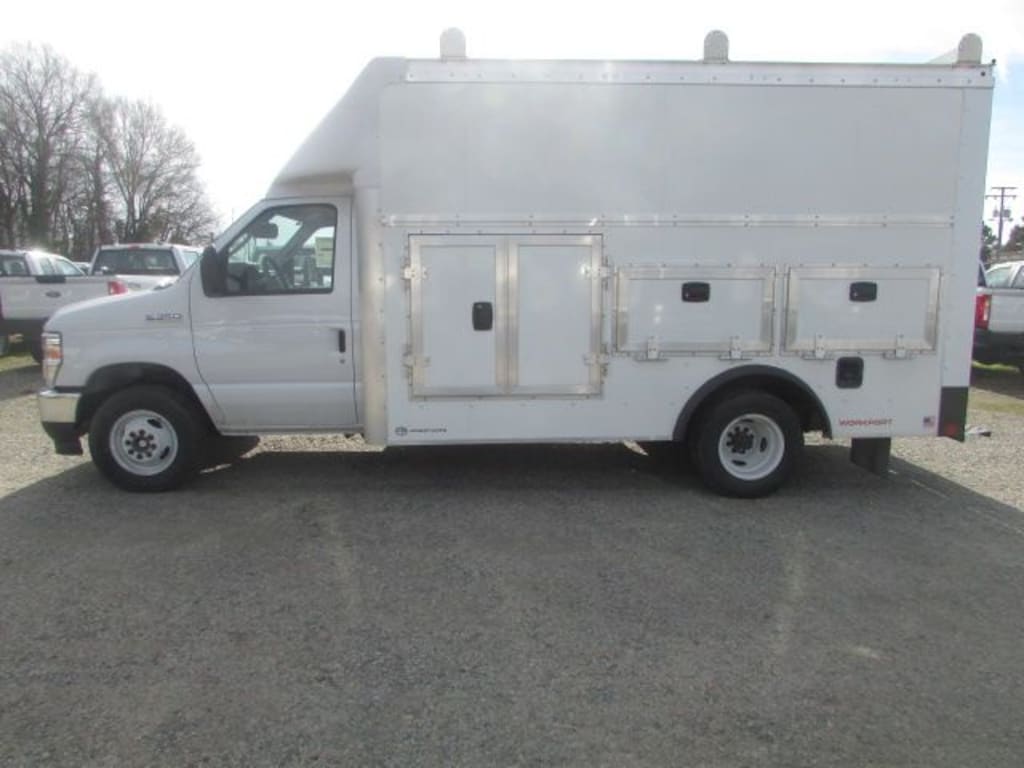 WHITE 2026 E-350 7.3L GAS 4.56 LIMITED SLIP AXLE POWER EQUIPMENT GROUP 12,500 GVWR 12' ROCKPORT WORKPORT REAR VIEW BACKUP CAMERA ELECTRIC LOCKS