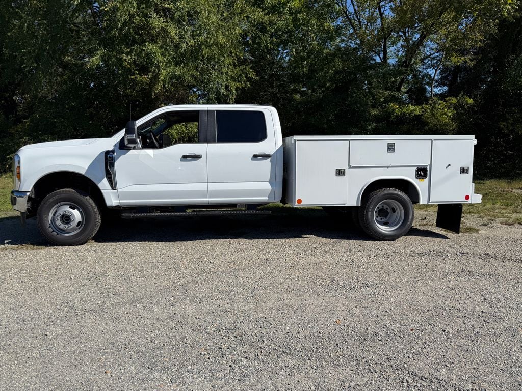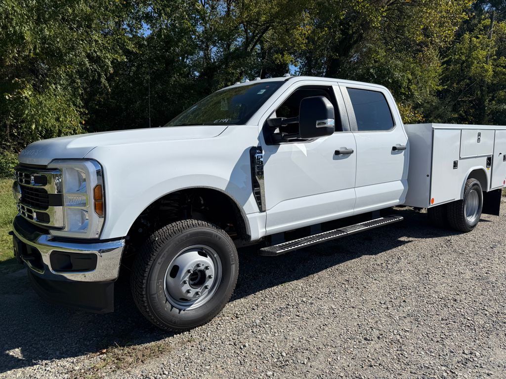 2026 F-350 WHITE CREW CAB 4X4 DRW 7.3L GAS 4.3 RATIO LIMITED SLIP PLATFORM RUNNING BOARDS 14,000 GVWR SNOW PLOW PREP XL CHROME PKG REAR VIEW CAMERA AND PREP 9' READING STEEL SERVICE BODY W/ MASTERLOCK